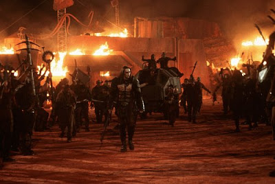 The aesthetic also stands out. The practical effects are still visible, in the production design juggling the aesthetics of the western genre with science fiction on a lower scale genre film, working around ways to depict details like the giant tank-like train, a symbol from western iconography, which still work and have their own distinct sheen. There is a sense of cool pulp sci-fi in the Millennium, and it feels closer to this new century and decade than a film washing over in aesthetics from the nineties either. The music is also strong for me, in mind that there is now a greater emphasis on chugging metal riffs, prominently involving the thrash metal band Anthrax but also including guitarists of note like Steve Vai, Buckethead and Nine Inch Nail’s Robin Finck. It feels less nu metal, as the time frame have shown to have been prevalent, but feeling part of what was to become the “New Wave of American Heavy Metal” that fully formed in 2005 onwards if in context of a John Carpenter score. Some may find it inappropriate, but for me it befits the aesthetic of the entire film, which is strong in itself. With the isolation of the red earth of the setting, all the colonial town setting has lo-fi science fiction aesthetics, with steel grey and heavy looking vehicles, heavy looking guns, and the costumes either suggesting struggling on in life or the uniforms of officers designed more for practicality in this environment. The world does breath into life in the little details.